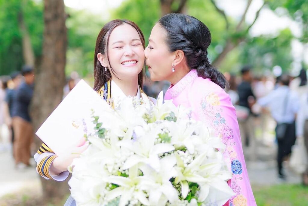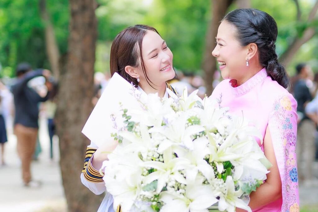โดยงานนี้ แม่กบ  พ่อเอ๋ หอบช่อดอกไม้แสดงความยินดีกับลูกสาวคนสวยพร้อมภาพถ่ายสุดอบอุ่น❤️