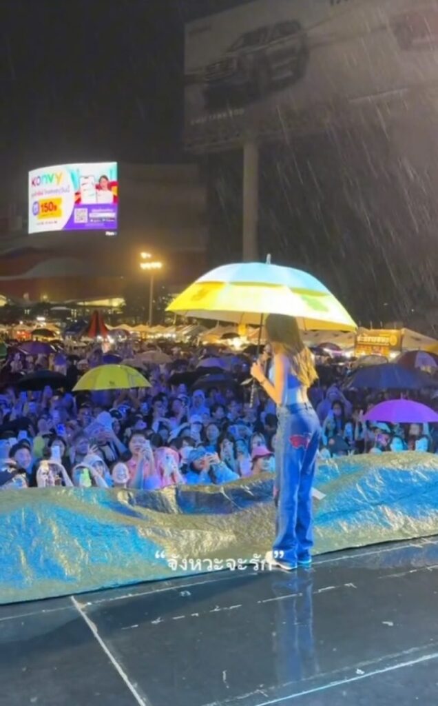 โดย สาววี โพสต์คลิปโมเมนต์สุดซาบซึ้งพร้อมแคปชั่นไว้ว่า “เมื่อฝนตกหนักและระบบไฟรั่ว เพื่อความปลอดภัยเราเลยไม่สามารถแสดงคอนเสิร์ตต่อได้ ขอบคุณทุกคนที่มายืนรอกัน รักที่สุดเลย ขอโทษที่สถานการณ์มันเป็นแบบนี้ ไว้มาเจอกันใหม่นะ ชาวเชียงใหม่ #violettewautier #วิโอเลตวอเทียร์”