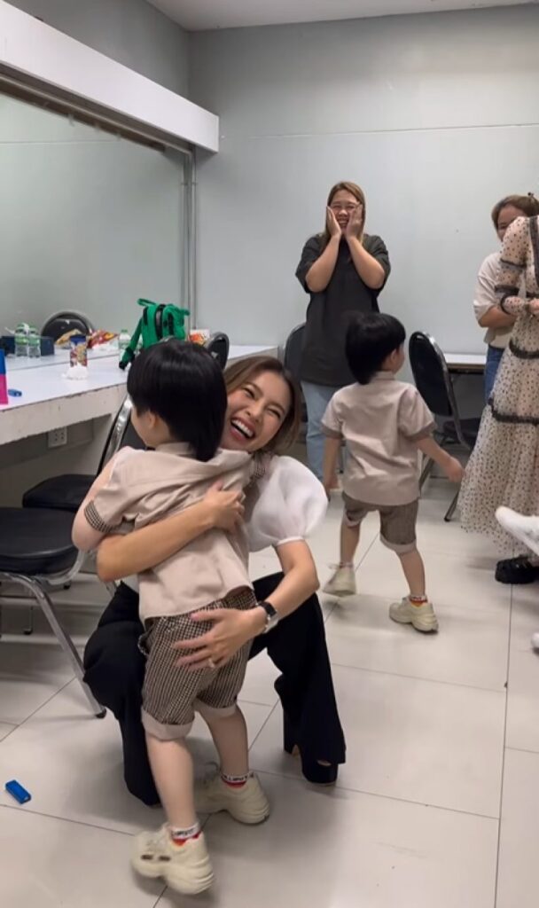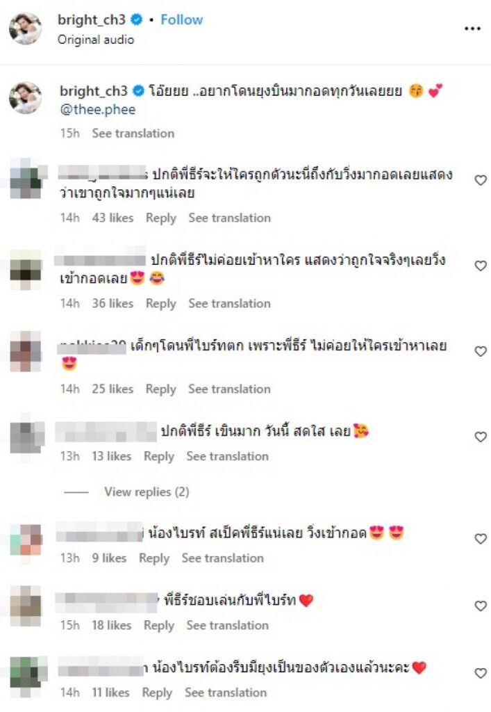 ซึ่งในคลิปจะเห็นว่า พี่ธีร์ – น้องพีร์ เล่นกับ สาวไบร์ท แถมยังวิ่งเข้าไปกอดอีกด้วย จนแฟนคลับบอกว่าแต้มบุญสูงมาก เพราะปกติ พี่ธีร์ ไม่เข้าหาใครง่าย ๆ