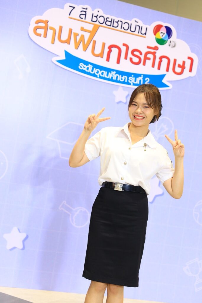 นักศึกษาตัวแทนนักเรียนทุนจาก “7 สี ช่วยชาวบ้าน สานฝันการศึกษา” ระดับอุดมศึกษา รุ่นที่ 2 นางสาวอารียา กุลพรหม นักศึกษาชั้นปีที่ 3 สาขาการปฐมศึกษา คณะครุศาสตร์ มหาวิทยาลัยสวนดุสิต เผยความรู้สึก “ขอบคุณโครงการดี ๆ และทุนการศึกษาจาก “7 สีช่วยชาวบ้าน สานฝันการศึกษา” ที่มอบโอกาสทางการศึกษาให้กับหนู และยังช่วยให้น้องของหนูได้เรียนต่ออีกด้วย เพราะหนูเองเป็นเด็กที่เกาะลันตาซึ่งอยู่ห่างไกล แต่เป็นอีกหนึ่งคนที่ได้รับโอกาสที่ดีทางการศึกษา ได้ทุนมาช่วยแบ่งเบาภาระทางการเงินของครอบครัว และทำให้สามารถส่งน้องเรียนต่อได้อีกด้วย การได้โอกาสครั้งนี้ช่วยต่อเติมฝันที่หนูอยากจะเป็นครูกลับไปพัฒนาบ้านเกิด อยากมอบโอกาสทางการศึกษาให้กับเด็ก ๆ ต่างจังหวัด เพราะมีเด็ก ๆ อีกหลายคนที่ขาดโอกาสทางการศึกษา เนื่องจากขาดแคลนทุนทรัพย์ หนูจีงอยากเป็นส่วนหนึ่งในการช่วยให้เด็ก ๆ เหล่านั้นได้มีโอกาสเรียนด้วยค่ะ”