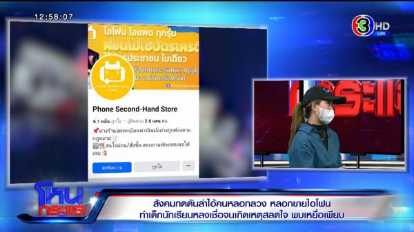 เจน : ตอนนั้นสนใจจะซื้อไอแพด เพราะต้องใช้ในการทำงาน พอค้นหาไอแพดในเฟซบุ๊ก เอไอจะจับว่ามีร้านไหนขาย เพจนี้ก็เด้งขึ้นมา ด้วยความที่เพจของเขามียอดผู้ติดตามเยอะ ประมาณแสนคน ของหนูโดนเพจที่ชื่อว่า phone second – hand ผู้ติดตามแสนกว่า เราเห็นคนติดตามเยอะ บวกกับเพื่อนในเฟซเราติดตามเพจนี้ด้วย ก็ทำให้น่าเชื่อถือ เราก็กดเข้าไปดู