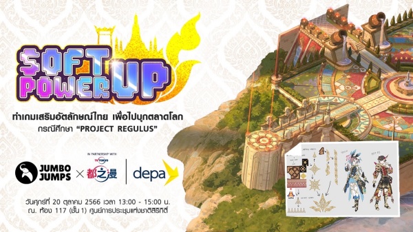 จัมโบ้ จั๊มพส์ – ดีป้า เดินหน้าจัด Soft-power Up! ทำเกมเสริมอัตลักษณ์ไทยเพื่อไปบุกตลาดโลก กรณีศึกษา “Project REGULUS” มุ่งยกระดับทักษะผู้ประกอบการเกมไทย เตรียมพร้อมสู่การแข่งขันในระดับสากล