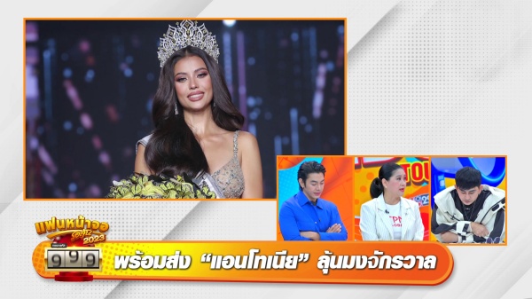 ต่อด้วยการทอล์คยาว ๆ กับเจ้าแม่เวทีนางงาม คุณปุ้ย-ปิยาภรณ์ แสนโกศิก นักธุรกิจสาวผู้ถือลิขสิทธิ์เวที “มิสยูนิเวิร์สไทยแลนด์” (MUT) กับประเด็นดราม่าที่ถาโถมเข้าใส่ไม่หยุดหย่อน ที่บอกว่ากระแสมิสยูนิเวิร์สไทยแลนด์เบาบางลง “จะเงียบไปจากวงการเลยก็ไม่ได้ น้องเตรียมตัวหนักมาก ชุดราตรีเกือบเสร็จแล้ว สวยมาก จริง ๆ งานค่อนข้างประณีตมาก” สิ่งที่จะสร้างความมั่นใจให้ตัว ปุ้ย นั้นคือ แอนโทเนีย โพซิ้ว ของไทยเราเอง