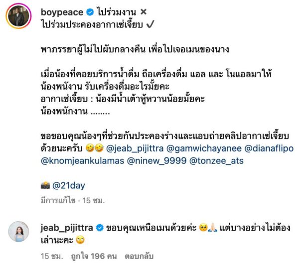 สร้างตำนานบทใหม่อีกแล้ว สำหรับนักแสดงสาวสวย อย่าง เจี๊ยบ พิจิตรา ที่ล่าสุดไปสร้างตำนานในงาน Fallin’ EP listening party โดยด้าน หนุ่มบอย พีชเมกเกอร์ แชร์โมเมนต์ความน่ารักของภรรยาไว้ว่า