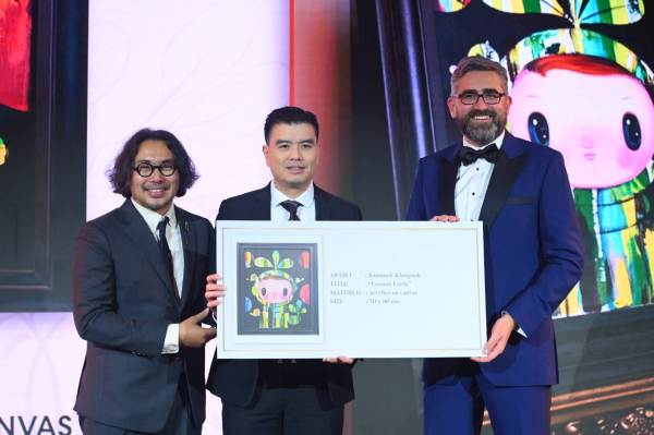 นอกจากนี้ไฮไลท์ของงานในค่ำคืนสุดพิเศษ คือการร่วมประมูลผลงานมาสเตอร์พีซของเหล่าศิลปินที่ทุ่มเทแรงกายแรงใจรังสรรค์ผลงาน ทั้ง 4 ชิ้น ได้แก่ “Metamorphosis A Tale in Textile”, 2019 ของ คุณเพลินจันทร์ วิญญรัตน์ เป็นผลงานที่ทำจากเศษผ้า และเส้นด้ายเส้นใยต่าง ๆ ซึ่งเป็นเครื่องยืนยันถึงความทุ่มเทของคุณมุกกว่า 20 ปี ในฐานะศิลปินผู้สร้างสรรค์ผลงาน, “Cocoon Earth” ผลงานของคุณสมนึก คลังนอก หรือครูปาน ผลงานนี้ใช้เทคนิคการวาดด้วยสี Acrylics บน Canvas ส่วนผลงานชิ้นที่ 3 คือ “MookmooK’ ของคุณธีรพจน์ ธีโรภาส redesign มาจากเก้าอี้ “Peacock chair” หรือที่เรียกติดปากว่า “เก้าอี้นางงาม” ซึ่งใช้วัสดุที่เป็นมิตรต่อสิ่งแวดล้อมนั่นก็คือพลาสติด recycle และเยื่อกาแฟ และผลงานชิ้นสุดท้าย คือ กระเป๋า “Infinitude Lyra Fringe” ส่งตรงจาก Runway ใน Collection ล่าสุดของแบรนด์ PIPATCHARA โดยใช้ฝาขวดพลาสติกที่ใช้แล้วนำกลับมาใช้ใหม่ และช้อนส้อมพลาสติกใส เป็นผลงานของคุณภิพัชรา แก้วจินดา