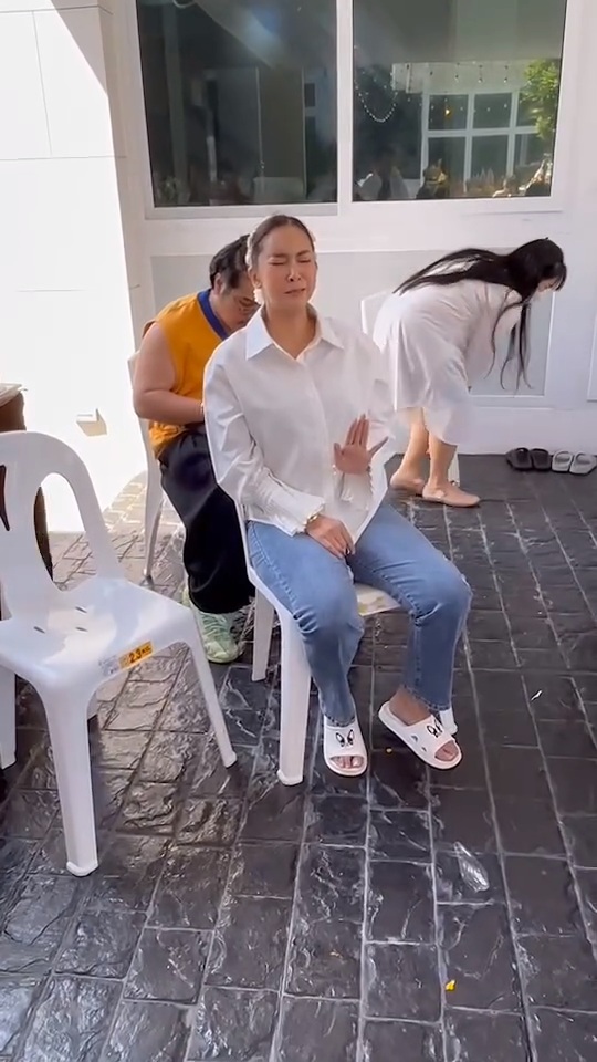 ซึ่งในคลิป สาวใหม่ โพสต์คลิปพร้อมแคปชั่นไว้ว่า “วันตั้งศาลองค์พ่อที่บ้าน อ.เป็นหนึ่ง @fengshui6909 มาทำพิธีให้ที่บ้าน แต่มีสิ่งนึงที่เกิดขึ้นกับตัวแม่ หลายคนไม่รู้ แต่แม่รู้!!! แม่สัมผัสได้!!! ว่าวันนี้องค์พ่อมาประทับที่ศาลแล้ว และพ่อ ก็ปิติดีใจมาก(ตามคลิปค่ะ วินาทีที่13) #อาจารย์เป็นหนึ่งลุกหนีแล้ว1 #ผู้จัดการลุกหนีแล้ว2 #ผู้จัดการขยับเก้าอี้หนีแล้ว3 “โอม ศรี คเณศายะ นะมะฮา”