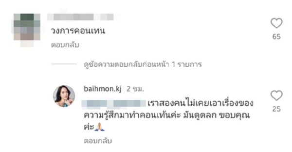 ทางด้าน สาวใบหม่อน ก็ออกมาตอบกลับแบบชัดเจนไว้ว่า “เราสองคนไม่เคยเอาเรื่องความรู้สึกมาทำคอนเทนต์ค่ะ มันดูตลก ขอบคุณค่ะ”