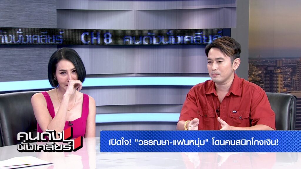 หลังจากเป็นข่าวใหญ่โตโดนคนสนิทโกงเงินธุรกิจขายน้ำพริก สำหรับนักแสดง “ษา วรรณษา ทองวิเศษ” แฟนหนุ่ม “อาท รณชัย” นักร้องลูกทุ่ง แถมยังถูกเชิดรถ ไม่ยอมเอามาคืน รายการ คนดังนั่งเคลียร์ ทางสถานีโทรทัศน์ช่อง8 เลยขอเชิญทั้งคู่ มาร่วมพูดคุย เปิดใจแบบเจาะลึก เพราะถูกเพื่อนหลายคนเข้าใจตัวเองผิดหาว่าไปรังแกคู่กรณี ไม่พอไม่มีเงิน จนถึงขั้นยืมเงินเรียนลูกมาใช้ก่อน แฟนๆสามารถรับชมย้อนหลังได้ทางยูทูบช่อง 8