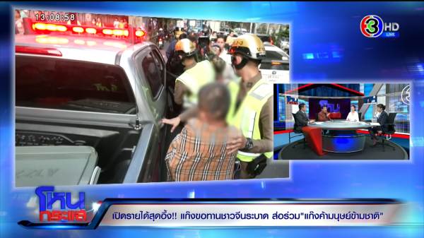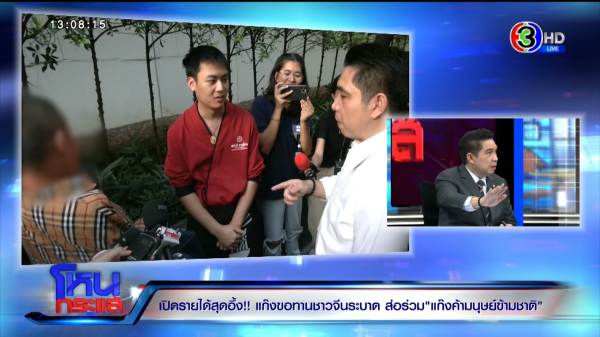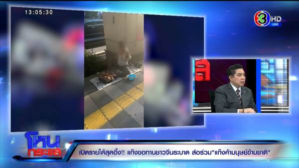 กัน : ขอเสริมว่าที่เรื่องนี้มันแดงมาตั้งแต่แรกคือขอทานเจ้าถิ่นไปเจอขอทานคนจีนคนนี้ยืนถือกล่องใส่ชุดนักเรียน แต่ขอทานเจ้าถิ่นบอกมาแย่งที่ฉันก็เลยเป็นข่าวเป็นเรื่องเป็นราว เป็นขอทานเจ้าถิ่นเจอขอทานต่างชาติทะเลาะกัน