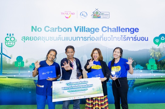 ในการนี้ รองผู้ว่าการด้านสินค้าและธุรกิจท่องเที่ยว ททท. ให้เกียรติมอบโล่รางวัลเพื่อเป็นตราสัญลักษณ์แสดงศักยภาพ และความพร้อมในการเป็นต้นแบบของการท่องเที่ยวแบบคาร์บอนสุทธิเป็นศูนย์ให้แก่ ๑๐ ชุมชนท่องเที่ยวต้นแบบ (No Carbon Village Challenge) พร้อมมอบประกาศนียบัตรให้แก่ทั้ง ๑๐ ชุมชนและ ๑๐ บริษัทนำเที่ยว ที่เข้าร่วมโครงการฯ อีกทั้ง ยังมีการมอบรางวัล The Best Partner and Collaboration Award สุดยอดพันธมิตรและความร่วมมือกับชุมชนต้นแบบ ให้แก่ บริษัท ฟรายเดย์ ทริป จำกัด และรางวัล The Best DMC Content Creator จากการจัดทำคอนเทนต์สร้างสรรค์เรื่องราวให้ชุมชน/สถานประกอบการใช้ส่งเสริม การขายและสร้างการรับรู้ในมุมมองที่แตกต่างอย่างสร้างสรรค์ในแบบที่ Amazing ยิ่งกว่าเดิม สำหรับทีมของบริษัทนำเที่ยวพันธมิตรผู้ชนะเลิศ ได้แก่ บริษัท เทรคกิ้งไทย จำกัด รับเงินรางวัลมูลค่า ๑๕,๐๐๐ บาท รางวัลรองชนะเลิศอันดับที่ ๑ ได้แก่ บริษัท สยามร้าย ทราเวล รับเงินรางวัลมูลค่า ๑๐,๐๐๐ บาท รางวัลรองชนะเลิศอันดับที่ ๒ ได้แก่ บริษัท ทัวร์อินไทย แอนด์ อะเมซิ่ง แทรเวิล จำกัด รับเงินรางวัลมูลค่า ๕,๐๐๐ บาท