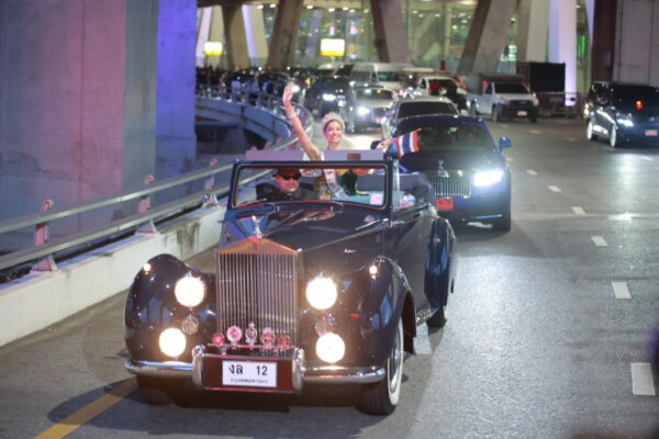 เมื่อวันที่ 26 พ.ย.66 แอนโทเนีย โพซิ้ว รองชนะเลิศอันดับที่ 1 Miss Universe 2023 ได้เดินทางถึงท่าอากาศยานสุวรรณภูมิ โดยสายการบิน TURKISH AIRLINE เมื่อเวลา 15.00 น. โดยในวันนี้ “แอนโทเนีย โพซิ้ว” ปรากฎตัวใน “ชุดไทยจักรี“ ออกแบบโดย ”ภูษา ผ้าลายอย่าง“ แรงบันดาลใจจาก “ชุดไทยจักรี” โดยมีแฟนคลับ ร่วมต้อนรับเป็นจำนวนมาก ก่อนขึ้นรถโรลส์รอยซ์ เปิดประทุนสีน้ำเงิน รุ่น Rolls-Royce 1951 Silver Dawn convertible ทะเบียน งล 12 กรุงเทพมหานคร แห่แสดงความยินดี จากสนามบินสุวรรณภูมิ ไปที่ท้องฟ้าจำลอง ผ่านเอกมัย มาทองหล่อ พร้อมพงษ์ มาที่อุทยานเบญจสิริ