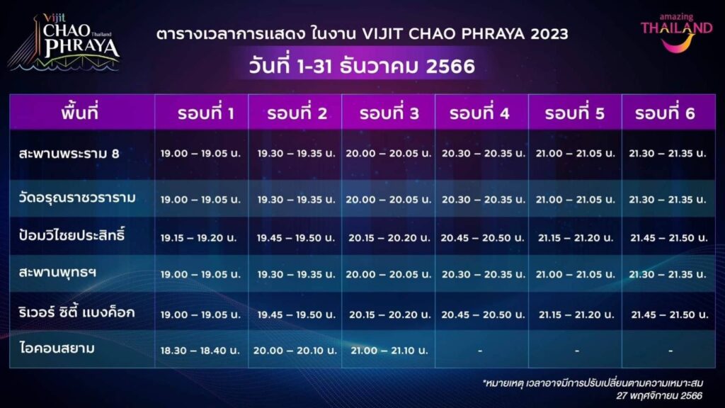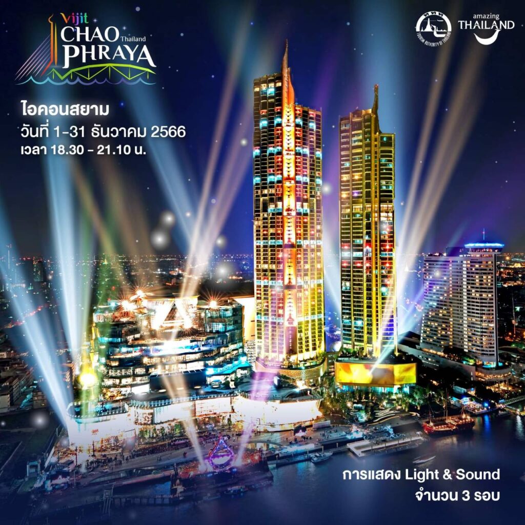 - ไอคอนสยาม พบการแสดง Light & Sound วันที่ 1-31 ธันวาคม 2566 วันละ 3 รอบ เวลา 18.30 – 21.10 น.