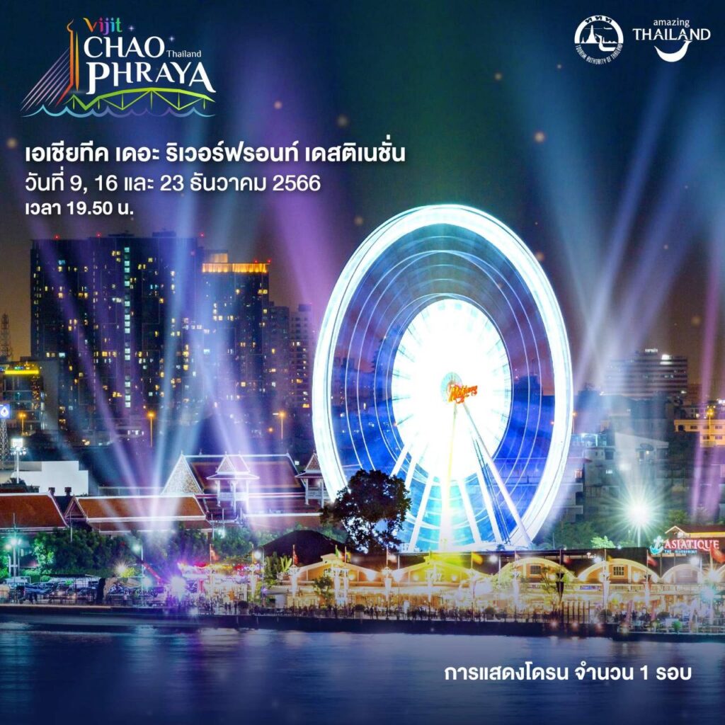 เตรียมพบกับมหาปรากฏการณ์ แสง สี สุดยิ่งใหญ่อลังการกว่าที่เคย ✨🎉 ‘Vijit Chao Phraya 2023’ โดยการท่องเที่ยวแห่งประเทศไทย ตระการตากับการแสดงมากมาย บริเวณริมแม่น้ำเจ้าพระยา ตลอดทั้งเดือนธันวาคม ใน 7 พื้นที่หลัก ประกอบด้วย
