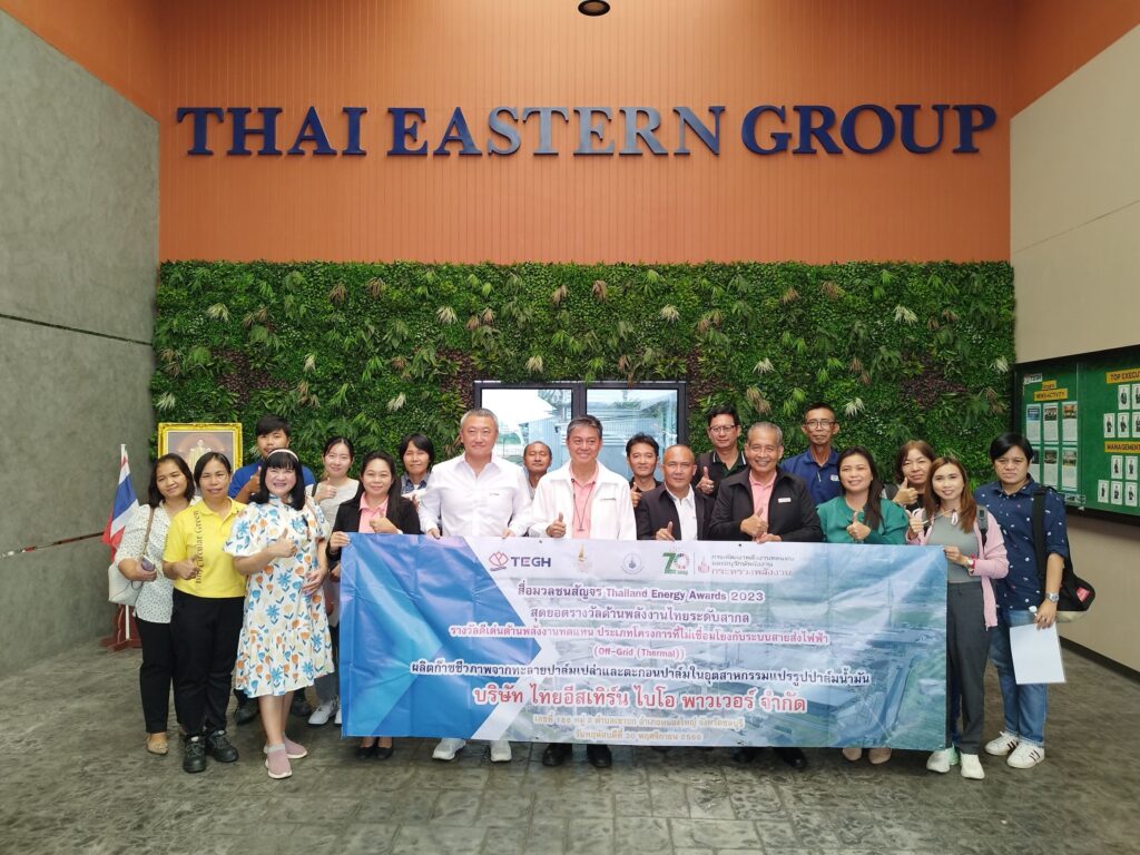 กรมพัฒนาพลังงานทดแทนและอนุรักษ์พลังงาน (พพ.) ศึกษาความสำเร็จ บริษัท ไทยอีสเทิร์น จ.ชลบุรี ผู้ผลิตและแปรรูปยางพาราและปาล์มน้ำมันในภาคตะวันออก คว้ารางวัลดีเด่น Thailand Energy Awards 2023 และรองชนะเลิศอันดับ 1 เวที ASEAN Energy Awards 2023 ด้านพลังงานทดแทน ประเภทโครงการที่ไม่เชื่อมโยงกับระบบสายส่งไฟฟ้า ดึงของเสียจากการแปรรูปยางพาราและน้ำเสียจากการผลิตน้ำมันปาล์มดิบ ผลิตก๊าซชีวภาพทดแทนการซื้อ LPG ในกระบวนการอบยางแท่ง ใช้เป็นเชื้อเพลิงผลิตไฟฟ้าใช้ภายในโรงงาน และขายไฟฟ้าเข้าระบบ กฟภ. โชว์ศักยภาพการผลิตก๊าซชีวภาพได้กว่า 9 แสนลูกบาศก์เมตร/ปี ลดการปล่อยก๊าซเรือนกระจกกว่า 1 พันตันคาร์บอนไดออกไซด์เทียบเท่า