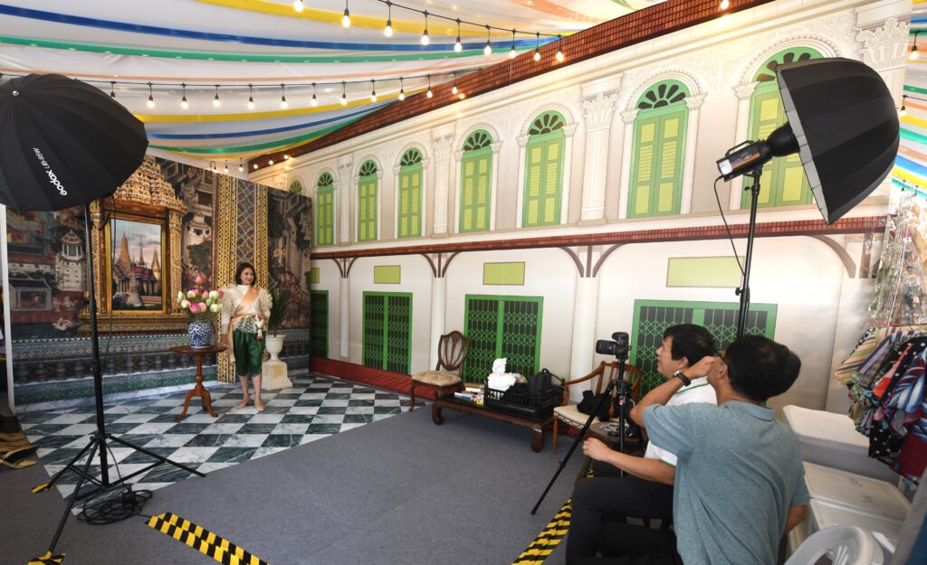 เป็นอีกหนึ่งโซนที่สร้างความคึกคักให้กับผู้ที่เข้ามาชม ‘บูธไทยเบฟ’ ได้แบบไม่น้อยหน้า ดังจะเห็นได้จากคิวคนยืนรอต่อแถวเข้ามาเปลี่ยนชุดไทยย้อนยุค กับฉากสวย ๆ กันตลอดทั้งวัน โดยคิดค่าบริการเพียงแค่ 99 บาท ราคานี้รวมแล้วทุกอย่างทั้งค่าถ่ายภาพ เช่าชุด เครื่องประดับ และค่าพิมพ์ภาพ แถมไฟล์ให้ไปดาวน์โหลดได้ฟรีด้วย ที่สำคัญรายได้ทั้งหมดไม่หักค่าใช้จ่ายมอบให้สภากาชาดไทย ตั้งแต่วันนี้ ถึง 18 ธันวาคม 66 นี้ ตั้งแต่เวลา 11.00 – 21.00 น. ที่ “บูธไทยเบฟ” โซนที่ 6