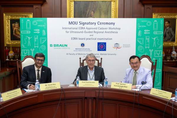 กรุงเทพฯ ประเทศไทย – บริษัท บี. บราวน์ (ประเทศไทย) จำกัด บริษัทเทคโนโลยีทางการแพทย์ชั้นนำของโลกจากเยอรมนี ลงนามบันทึกความเข้าใจร่วมกับคณะแพทยศาสตร์ศิริราชพยาบาล มหาวิทยาลัยมหิดล และสมาคมการระงับความรู้สึกเฉพาะส่วนและการระงับปวดแห่งสหภาพยุโรป (The European Society of Regional Anaesthesia & Pain Therapy; ESRA) องค์กรชั้นนำที่มีชื่อเสียงในด้านการวิจัย การศึกษา และการฝึกอบรมที่มีมาตรฐานด้านวิสัญญีวิทยา บันทึกความความร่วมมือไตรภาคีนี้สำเร็จได้ด้วยความสัมพันธ์ที่มีมาอย่างยาวนาน ภายใต้วัตถุประสงค์เพื่อพัฒนาโครงการฝึกอบรมระดับภูมิภาคเอเชียแปซิฟิกผ่านหน่วยงานด้านการศึกษาและการฝึกอบรมทางด้านสาธารณสุขระดับโลก “เอสคูแลป อะคาเดมี่”