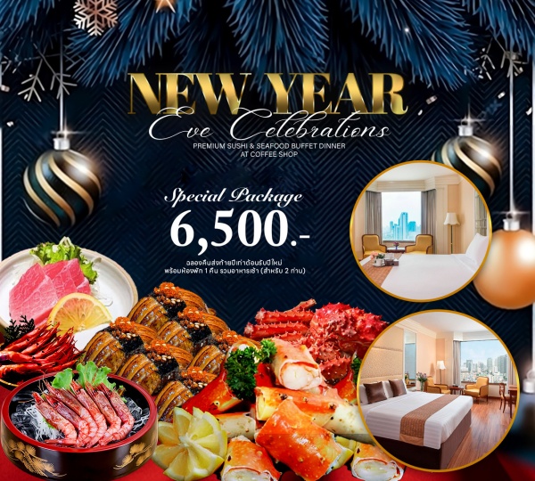 ขอเชิญท่านมาร่วมส่งท้ายปีเก่า ต้อนรับปีใหม่ ค่ำคืนวันที่ 31 ธันวาคม 2566 ที่ ดิเอมเมอรัลด์ ค็อฟฟี่ช็อพ โรงแรม ดิ เอมเมอรัลด์ อิ่มอร่อยกับบุฟเฟต์นานาชาติรวมซูชิพรีเมียมและซีฟู้ด ที่ได้คัดสรรเมนูเพื่อมื้อค่ำสุดหรูของคุณ พร้อมเครื่องดื่มพิเศษให้เลือก 1 แก้วและน้ำอัดลมไม่อั้น เพลิดเพลินกับวงดนตรีเล่นสด เสริมบรรยากาศสนุกสุขสันต์ให้ทุกท่านได้ประทับใจ แล้วลุ้นรับรางวัลมากมาย ผู้ใหญ่ท่านละ 2,567 บาท เด็ก 1,280 บาท ช่วงนับเวลาถอยหลังเข้าสู่ปีใหม่ รับปาร์ตี้เซทและเครื่องดื่มพิเศษท่านละ 1 แก้ว