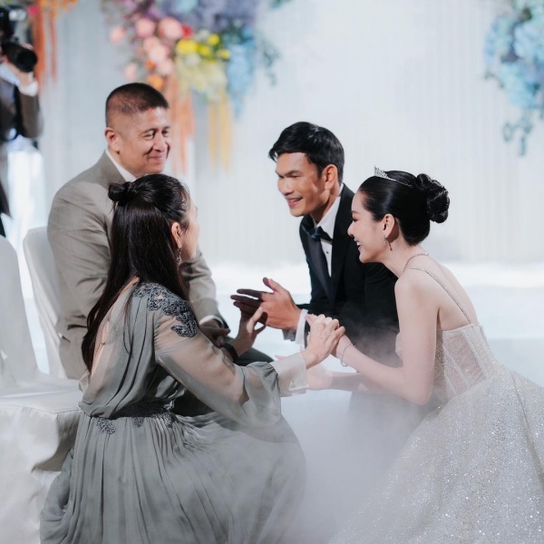 และอีกหนึ่งคนสำคัญที่ร่วมงานในครั้งนี้คือ มาดามเเป้ง นวลพรรณ ล่ำซำ เเละ สามี คุณณรัชต์ เศวตนันทน์ เข้าร่วมงานด้วย โดย มาดามเเป้งได้โพสต์ภาพพร้อมเเคปชั่นว่า ยินดีกับกอล์ฟน้องรัก @golf_ak9 กับน้องหยกอย่างที่สุดนะคะ ขอให้มีชีวิตคู่ ที่ผาสุก ร่มเย็น และ เจริญก้าวหน้านะคะ
