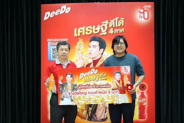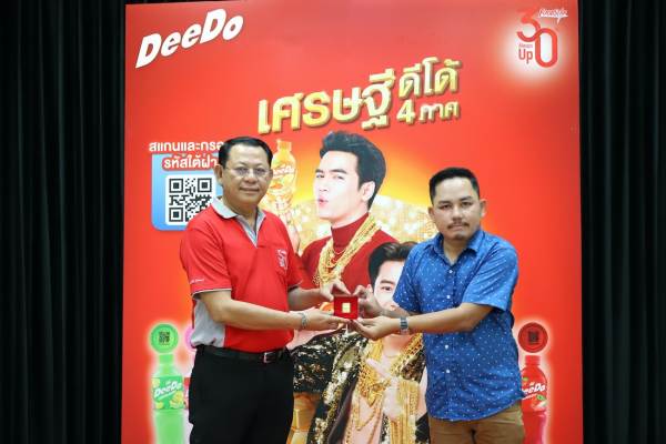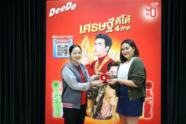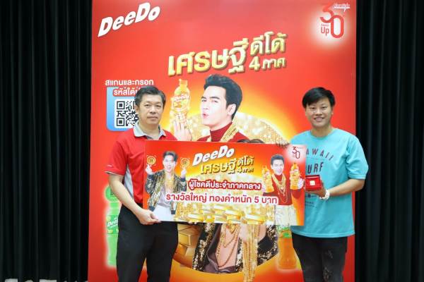 ได้ผู้โชคดีเศรษฐีหน้าใหม่ทั้ง 4 ท่านเป็นที่เรียบร้อยแล้ว สำหรับบิ๊กแคมเปญ ดีโด้บิดฝาพารวย “เศรษฐีดีโด้ เศรษฐี 4 ภาค” แจกทองทุกภาค รวยทุกภาค แจกทองรวมมูลค่ากว่า 4.5 ล้านบาท แคมเปญสุดปังจาก“ดีโด้” น้ำผลไม้พร้อมดื่มยอดขายอันดับ 1 ของไทย เดินหน้าแจกทองแบบจัดหนักจัดเต็ม!! ต่อที่ 1 แจกสร้อยคอทองคำ หนัก 25 สตางค์ มูลค่ารางวัลละ 7,500 บาท รวมทั้งสิ้นจำนวน 532 รางวัล รวมมูลค่า 3,990,000 บาท แจกทุกวันตลอดทั้ง 5 เดือน