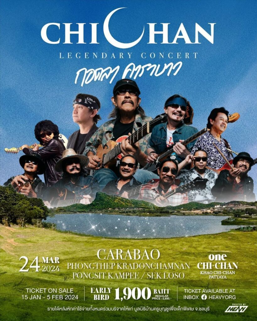คอนเสิร์ตการกุศล /รับเพียง 2000 คนเท่านั้น CHICHAN LEGENDARY Exclusive Concert “กอดลาคาราบาว” ครั้งสุดท้ายของภาคตะวันออก ก่อนยุบวง 1 เมษายน 2567 โดยรายได้หลังหักค่าใช้จ่ายทั้งหมดร่วมบริจาคให้แก่มูลนิธิบ้านครูบุญชูเพื่อเด็กพิเศษ จ.ชลบุรี พบกับศิลปิน: คาราบาว / พงษ์เทพ กระโดนชำนาญ / พงษ์สิทธิ์ คำภีร์ และ เสก โลโซ ในวันอาทิตย์ที่ 24 มีนาคม 2567 สถานที่จัดงาน วันชีจรรย์ อยู่ใกล้เขาชีจรรย์ พัทยา Map : https://bit.ly/onechichan (ห่างจากหาดจอมเทียนพัทยา 20 กิโลเมตร ที่พักโรงแรมพร้อมให้บริการมากมาย )