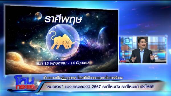 “ราศีพฤษภนั่นเอง ปีที่แล้วไม่ใช่ไม่ดีธรรมดา โคตรไม่ดีด้วย หนึ่งเจ้าภาพมฤตยูคือพฤษภ ปีที่ผ่านมาไปโดนสองเด้ง มฤตยูเข้ามี.ค. แถมดาวตัวช่วยก็ไม่มี บางคนเจอมฤตยูอย่างเดียว แต่มีดาวอย่างอื่นช่วย ก็ถัวกันไป แต่พฤษภมฤตยูเข้า ตัวช่วยก็ไม่มี งานก็วุ่นวาย เจ้านายก็มีปัญหา ชีวิตหันไปแล้วพึ่งใครไม่ค่อยได้ แต่ในปี 67 เหตุการณ์พลิกทันที จากร้ายกลายเป็นดี หลังจาก 30 เม.ย. ดาวที่ดีที่สุดจะสถิตเข้าราศีพฤษภ และอยู่กับราศีพฤษภไปอีก 12 เดือน หนึ่งปีเต็ม ใครราศีพฤษภ ดาวพฤหัสคือโชคลาภราศีพฤษภ โชคลาภก็ดี ส่งผลให้โชคลาภดี การเงินก็ปัง ผู้ใหญ่ก็เมตตา ถ้านับในภาพรวม พิจิกดีเรื่องความรักคู่ครอง เมษการเงินจะมาแรง แต่พฤษภจะรวมทั้งงานเงินความรักสุขภาพ แต่สุขภาพฝากนิดเดียว คนกินอิ่มนอนหลับ ราศีที่จะน้ำหนักตัวเพิ่มมากที่สุดในปีหน้าคือราศีพฤษภ เพราะสบาย ย้ำว่าดวงคุณดีมาก คุณมีโอกาสเข้ามามากขึ้น แต่คนจะประสบความสำเร็จ หนึ่งต้องมีประสบการณ์ มีความรู้ ถ้าคุณได้โอกาสมาโดยไม่มีความรู้ มันจะกลายเป็นโอกาสร้าย มันไม่ใช่โอกาสดี ฉะนั้นใครเกิดราศีพฤษภ เร่งศึกษาหาความรู้เติมสติปัญญา ประสบการณ์ เมื่อฟ้าเปิดปุ๊บคุณจะกลายเป็นคนที่เก่งและเฮง ความสำเร็จรอคุณอยู่ในปี 67 อย่างแน่นอน”
