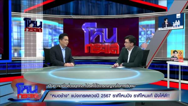 รายการโหนกระแส ออกอากาศวันที่ 29 ธันวาคม 2566 ดำเนินรายการโดย “หนุ่ม กรรชัย กำเนิดพลอย” ผลิตในนามบริษัท ดีคืนดีวัน จำกัด ออกอากาศทุกวันจันทร์-ศุกร์ เวลา 12.35 น. ทางช่อง 3 กดเลข 33 วันนี้ได้สัมภาษณ์ “หมอช้าง ทศพร ศรีตุลา” แบ่งเกรดดวงดีปี 67 ราศีไหนโคตร A ราศีไหนเกรด D ต้องระวัง