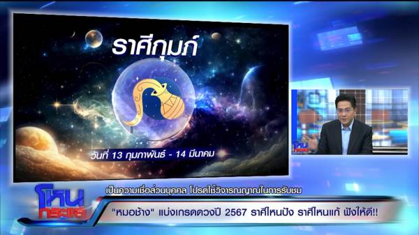 “ประมาณ 4 ราศี แสดงว่าพวก B คือพวกที่ 67 ดีกว่า 66 กลุ่มราศีที่ได้ B คือชีวิตของคุณในปี 67 ดีขึ้น ราศีแรกคือราศีมีน 15 มี.ค.-13 เม.ย. ราศีมีนเป็นราศีที่พระราหูเพิ่งเข้าวันที่ 17 ต.ค. ที่ผ่านมา ในปี 67 พระราหูยาวทั้งปี หลายคนสงสัยว่าราหูเข้าแล้วได้ B ได้ยังไง ประเด็นคือปัจจุบันคำทำนายเกี่ยวกับพระราหูไม่ได้น่ากลัวเหมือนแต่ก่อน สมัยก่อนราหูเข้าต้องเดินทางเยอะ ต้องเจอเงามาครอบงำ แต่ปัจจุบันเดินทางก็ไม่ได้น่ากลัวอะไร เงาก็ไม่ใช่ปัญหา เพราะโลกแห่งเงาอยู่ในมือถือเราทุกวันคือออนไลน์ ดังนั้นคนเกิดราศีมีนพระราหูเพิ่งเข้ามา มันทำให้ชีวิตมีการเปลี่ยน ถึงจุดเปลี่ยน และเปลี่ยนไปในทางที่ดีขึ้น