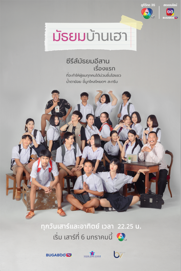 มาต่อกันที่ซีรีส์แบบไทย ๆ กับ “มัธยมบ้านเฮา” ผลงานการกำกับของ เตเต้-สมชาย สายอุทา หนึ่งในทีมนักแสดงภาพยนตร์ เรื่อง สัปเหร่อ โดยซีรีส์เรื่องนี้ เคยประสบความสำเร็จมาแล้ว บนแพลตฟอร์มออนไลน์ Bugaboo.TV ทำสถิติด้วยยอดวิว 7.9 ล้านวิว ล่าสุด ช่อง 7HD จับมาลงจอทีวีให้แฟน ๆ ได้ชมความสนุกของซีรีส์แนวมัธยมอีสานเรื่องแรก ที่จะพาผู้ชมไปสัมผัสประสบการณ์ เปรี้ยว ๆ หวาน ๆ อย่างที่ไม่มีใครเคยทำมาก่อน เรื่องราวความรัก ความฝันของเด็ก ๆ ที่ต่างครอบครัว ต่างที่มาต่างจุดหมาย ดำเนินมาจนจบปีการศึกษา แต่แล้วความเข้าใจ และความฝันของหลายคน กลับไม่เป็นไปอย่างที่คิด เส้นทางที่สร้างความสุข ความสนุก การสูญเสีย ความเศร้า และความงดงามของวิถีชีวิตแบบอีสาน จะนำพาชีวิตเด็ก ๆ มัธยมกลุ่มนี้ ไปในทิศทางใด มุมมองของพวกเขาจะแตกต่างจากเด็กเมืองกรุงอย่างไร มาหวีดรับความเป็นไทบ้าน กับ มัธยมบ้านเฮา ทุกวันวันเสาร์–อาทิตย์ เวลา 22.25–23.25 น. เริ่มวันเสาร์ 6 มกราคมนี้