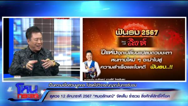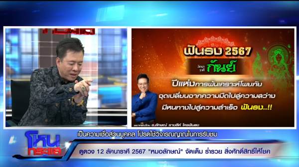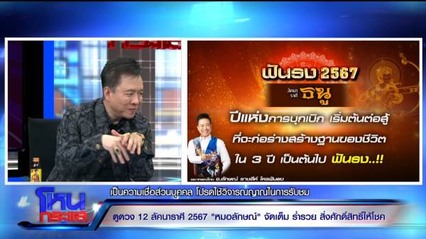 “พอมาโหนกระแสซึ่งเป็นรายการทรงพลังของแผ่นดิน เป็นขวัญกำลังใจ เป็นความหวัง เป็นหลายสิ่งหลายอย่าง คนด่ายับแต่ดัง ไม่ต้องไปกลัว ปี 67 เป็นปีเปลี่ยนแปลงประเทศ เปลี่ยนแปลงโลก เปลี่ยนแปลงแผ่นดิน เปลี่ยนแปลงดวงชะตาใน 12 ราศี ฟันธง!”