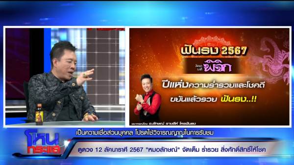 รายการโหนกระแส ออกอากาศวันที่ 1 ม.ค. 67 ดำเนินรายการโดย “หนุ่ม กรรชัย กำเนิดพลอย” ผลิตในนามบริษัท ดีคืนดีวัน จำกัด ออกอากาศทุกวันจันทร์-ศุกร์ เวลา 12.35 น. ทางช่อง 3 กดเลข 33 วันนี้สัมภาษณ์ “อาจารย์ลักษณ์ ราชสีห์” อธิบดีโหร สถาบันพยากรณ์ศาสตร์ ดูดวง 12 ลัคนาราศี ปี 2567 เพื่อเป็นแนวทางดำเนินชีวิตรับปีใหม่