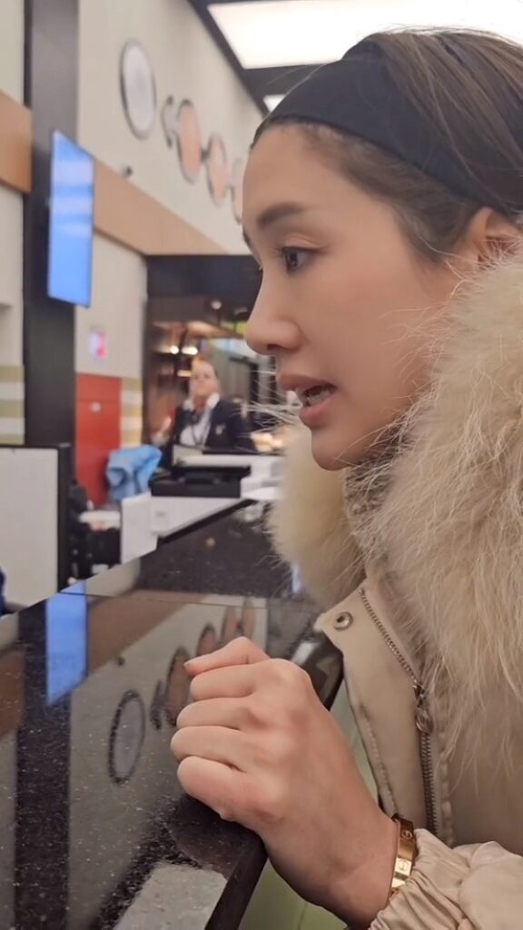 พิมและพลอยก็เลยเดินไปสถานีตำรวจเพื่อแจ้งความ เข้าไปในห้องตำรวจก็พบว่าตำรวจกำลังเล่นเกมอยู่ แล้วที่สำคัญเลยคือสื่อสารยากมาก ต้องใช้โปรแกรมช่วยแปล เพราะเขาพูดภาษาอังกฤษกันไม่ได้ พิมก็เลยต้องเล่าเรื่องให้เขาฟังผ่านระบบแปลภาษา ตำรวจเขาก็รับเรื่องค่ะ แต่พิมรู้สึกได้เลยว่าเขาช่วยแบบส่ง ๆ คือพิมกับพลอยก็ขอร้องเขาตลอดเลยนะคะ ขอให้เขาช่วยเราหน่อย เพราะของมันสำคัญมากจริง ๆ เขาให้ดูกล้องวงจรปิดแค่บางส่วนนะคะ ซึ่งจุดที่เปิดให้ดูก็คือ จุดรางเลื่อนรับกระเป๋า ไปจนถึงตอนที่กระเป๋าไปอยู่จุดรับของหาย
