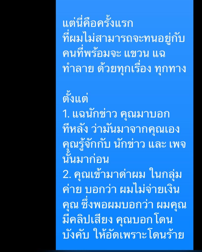 3. การแฉในรอบแรก ที่เค้ายอมรับในภายหลังว่า เป็นคนสร้างข่าวเอง และรู้จัก กับนักข่าว และ เพจ เจ้าของต้นเรื่อง