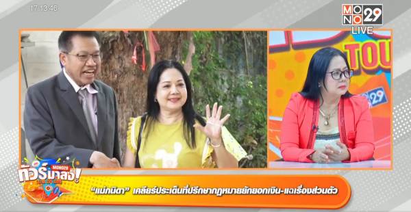 เปิดจอรอดูข่าวแซ่บกับสามพิธีกรฝีปากกล้า พชร์-อานนท์, บูม-สุภาพร และ เป็กกี้-ศรีธัญญา ในรายการ “ทัวร์มาลง” ทุกวันจันทร์ถึงวันศุกร์ เวลา 17.05 น. ทางช่อง MONO29 ในวันพุธที่ 10 มกราคมนี้ เคลียร์พื้นที่ให้กับแขกรับเชิญพิเศษ คุณแม่พนิดา ศิริยุทธโยธิน มาเปิดใจคุยกันแบบสด ๆ ทุบประเด็นดราม่า หลังแถลงข่าวเรื่องโดนยักยอกจากทีมทนาย แต่แล้วถูกแฉเรื่องส่วนตัว จนกลับมาเป็นที่สนใจของสังคมอีกครั้ง