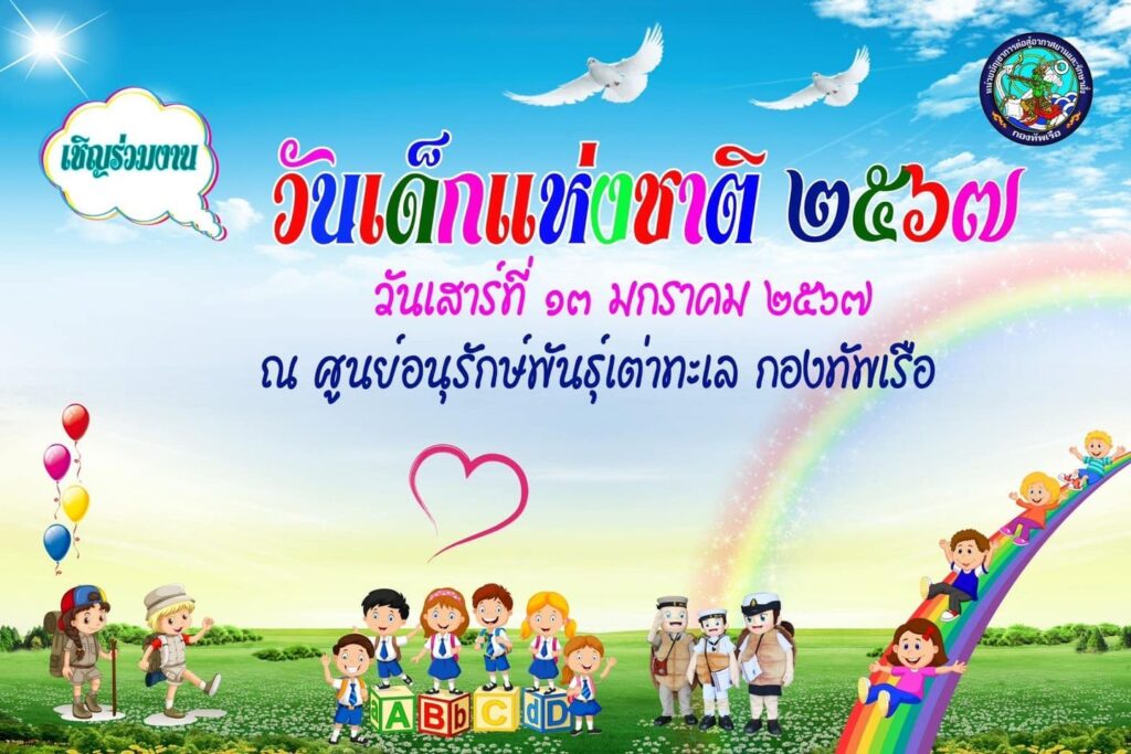 วันเด็กแห่งชาติ ประจำปี 2567 ตรงกับวันเสาร์ที่ 13 มกราคม 2567 ขอชวนน้องๆ หนูๆ มาร่วมสนุกกับกิจกรรมวันเด็กแห่งชาติ ประจำปี 2567 ณ ศูนย์อนุรักษ์พันธุ์เต่าทะเลกองทัพเรือ อ.สัตหีบ จ.ชลบุรี พบกับความสนุกสนาน และ ของรางวัลอีกมากมาย ตั้งแต่เวลา 08.00 น. – 13.00 น. ฟรีตลอดงาน