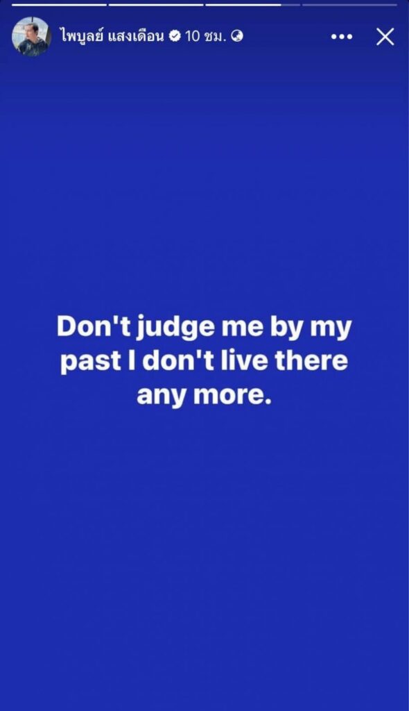 ล่าสุด ครูไพบูลย์ ได้ออกมาเคลื่อนไหวทั้งโพสต์รูปและเปลี่ยนรูปเป็นรูปหัวใจแตกสลาย และโพสต์ข้อความภาษาอังกฤษไว้ว่า “Don’t judge me by my past I don’t live there any more.”
