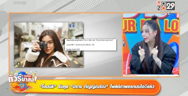 พิธีกร ซานิ เล่าข่าวว่าทั้งสองยอมรับแล้วว่าดูใจกันอยู่ “ทั้งคู่กำลังศึกษากันอยู่ ล่าสุดเขาโพสต์แคปชั่นลงไอจีผลงานภาพที่เขาเอาไว้ลงรูป ว่า This is the real “No private anymore” นี่แหละตัวจริงไม่มีการปกปิดอีกต่อไป