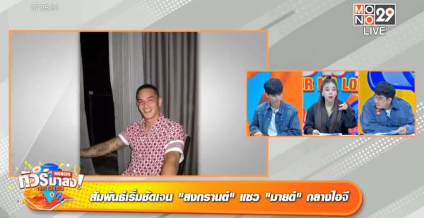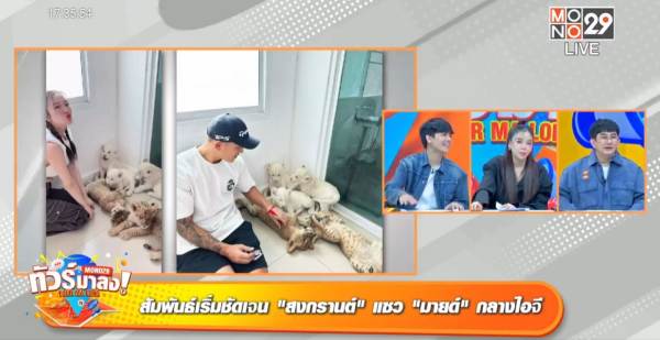 จากนั้นก็ไปต่อที่คู่ของ สงกรานต์ เตชะณรงค์ กับสาว มายด์ ณภศศิ สุรวรรณ ที่ล่าสุดความสัมพันธ์เริ่มชัดเจน พิธีกร ซานิ เม้าท์ว่าล่าสุดทั้งสองโพสต์รูปเล่นกับน้องเสือมุมถ่ายรูปเดียวกัน แถมไม่นานนี้ สงกรานต์ ก็ไปออกรายการที่ นิกกี้ เป็นพิธีกร พูดถึงความรักครั้งใหม่ว่าตอนนี้ไม่โสดแล้ว และไม่โสดมาสักพักแล้ว ไม่ได้ปิดแต่ไม่ได้เปิด อยู่นิ่ง ๆ เงียบๆ ชิลๆ ไม่อยากเป็นข่าว