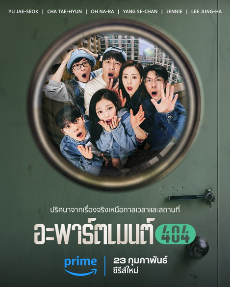 ยกทัพผู้เข้าร่วมรายการสุดปัง อย่าง “เจนนี่ BLACKPINK” และ “ยูแจซอก” เรียลลิตี้ไขปริศนา Apartment404 จะสตรีมที่ Prime Video ในประเทศไทย และอีกมากกว่า 240 ประเทศและเขตแดนทั่วโลก 23 กุมภาพันธ์ นี้