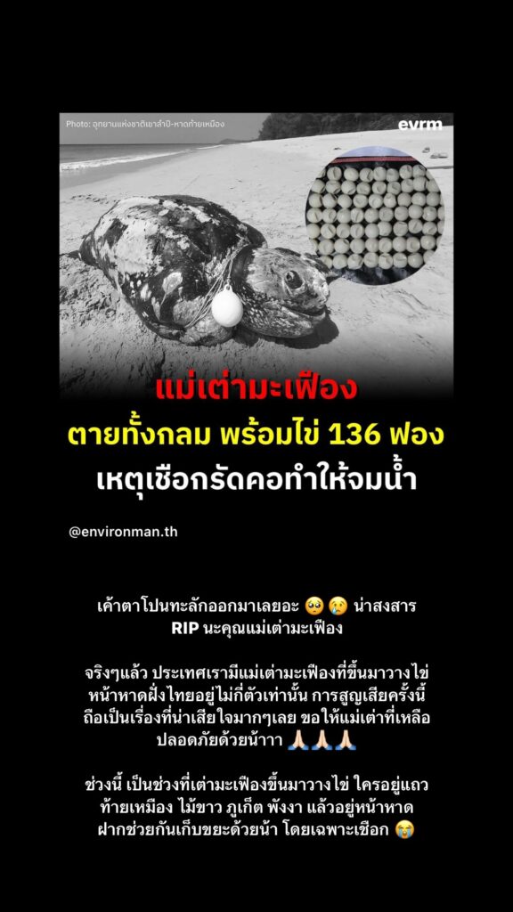 นับว่าอีกหนึ่งเหตุการณ์ที่สร้างความสะเทือนใจให้กับรักสัตว์อย่างมาก สำหรับข่าว แม่เต่ามะเฟือง ตายทั้งกลม พร้อมไข่ 136 ฟอง เหตุเชือกรักคอทำให้จมน้ำ