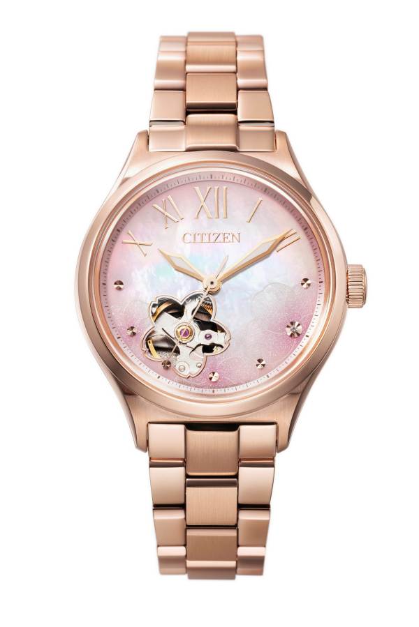 CITIZEN รุ่น PC1017-70Y Sakura Limited Edition Collection นาฬิกาสุดเอ็กซ์คลูซีฟ มาในดีไซน์คลาสซี่ แรงบันดาลใจจากดอกซากุระ ตัวเรือนและสายสเตนเลสสีโรสโกลด์ ประดับคริสตัล ณ ตำแหน่ง 5 นาฬิกา หน้าปัดโดดเด่นด้วยลายดอกซากุระ ทำจากเปลือกหอยมุกสีชมพูไล่เฉดสีฟ้า สะท้อนถึงฤดูแห่งซากุระบานสะพรั่ง ดอกซากุระกำลังลอยตามกระแสลมที่พัดผ่าน สะดุดตาด้วยดอกซากุระขนาดใหญ่ และเคสใสด้านหลัง เผยให้เห็นความอัศจรรย์ของกลไกอัตโนมัติคาลิเบอร์ 8229 มาพร้อมกับเข็มบอกเวลาเรืองแสง ตัวเรือนขนาด 34 มม. กันน้ำได้ที่ระดับ 100 เมตร พิเศษสุดรับเดือนแห่งความรักกับสายนาฬิกาหนังสีชมพู ให้สาว ๆ ได้เปลี่ยนลุคหลากสไตล์ และกล่องใส่นาฬิกาสุดเอ็กซ์คลูซีฟ ในราคา 24,600 บาท