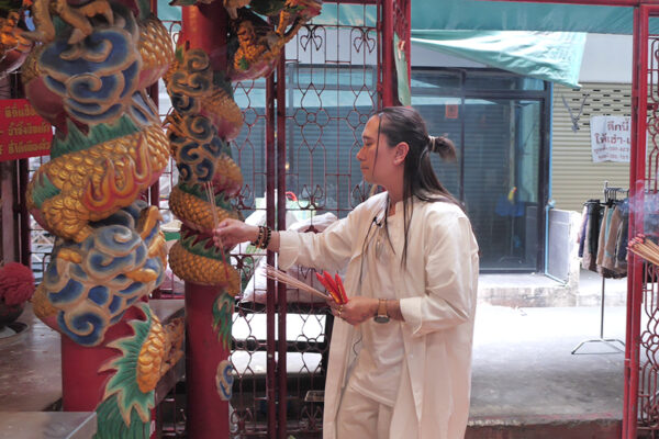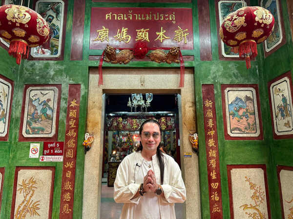 โดยสถานที่แรกที่ “พีธ พีระ” พาไปไหว้ก็คือ ศาลเจ้าแม่ประดู่ อยู่ในซอยเยาวพานิช ย่านตลาดเก่าเยาวราช เป็นสถานที่ที่คนนิยมมาขอพรเรื่องความรัก เพราะมีความเชื่อว่า ถ้าได้มาขอพรที่นี่แล้วจะสมหวัง เพราะองค์เจ้าแม่สร้างขึ้นมาจากไม้ประดู่ โบราณมีความเชื่อเรื่องเสริมครอบครัว ทำให้มีความรักใคร่กัน นอกจากนี้ยังนิยมขอเรื่องลูก หน้าที่การงาน และเรื่องโชคลาภอีกด้วย ซึ่งงานนี้ “พีธ พีระ” เลยขอนำน้องทีมงานที่อยากขอพรเรื่องความรักมาไหว้ด้วยกันซะเลย ก่อนจะพาน้อง ๆ ทีมงานไปต่อกันที่ วัดเทพมณเฑียรย่านเสาชิงช้า โดยวัดเทพมณเฑียรหรือสมาคมฮินดูสมาช เป็นวัดพราหมณ์อยู่ชั้น 3 ของโรงเรียนภารตวิทยาลัย ซึ่งเต็มไปด้วยเทพหลากหลายองค์ในศาสนาพราหมณ์-ฮินดู เราจะมาขอพรความรักกับ “พระกฤษณะ” และ “พระแม่ธาราเทวี” อีกอวตารหนึ่งของพระวิษณุนารายณ์ สิ่งที่ใช้ไหว้ก็คือผลไม้และนม ขอให้มีความรักที่ดี เนื้อคู่ที่ดี รักเดียวใจเดียว ซื่อสัตย์ และมีความสุขตลอดชีวิต ดังเช่นความรักของ พระกฤษณะ และพระแม่ธาราเทวี ที่เป็นรักแรกและรักเดียวที่ฝังใจตลอดชีวิตของพระกฤษณะเลยก็ว่าได้ และวัดสุดท้ายที่เราจะไปขอพรคือ วัดท่าพระ ขอพรกับ “หลวงพ่อเกษร” ซึ่งเป็นพระพุทธรูปตั้งแต่ปลายสมัยอยุธยา โดยมีความเชื่อว่าหากมาขอพรเรื่องความรักกับหลวงพ่อเกษร จะได้รับความรักที่สมหวังและมีความสุขที่สุดในชีวิต เพราะหลวงพ่อเกษรมีพุทธคุณเรื่องเมตตามหานิยม เมตตามหาเสน่ห์ งานนี้เรียกว่าปิดท้ายทริปมูวาเลนไทน์กันแบบอิ่มบุญอิ่มใจ แถมได้รับพลังบวกต้นปีกันถ้วนหน้า