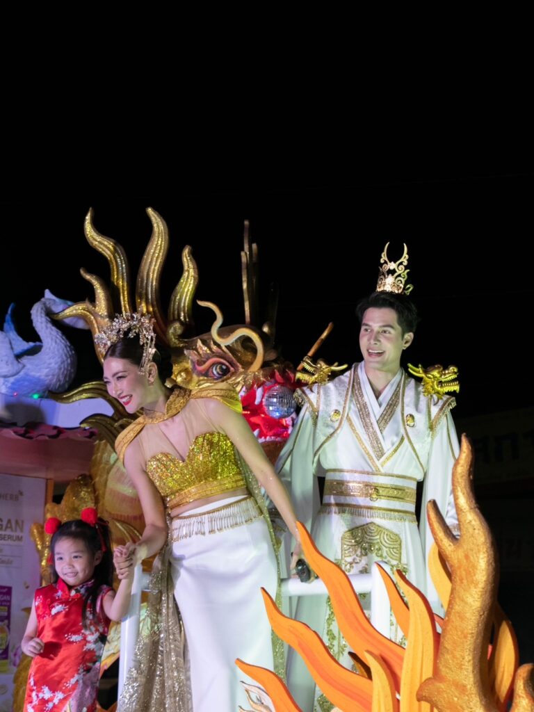 โดยมี จุฬาเฮิร์บ และ ยาสีฟันเจเด้นท์ เป็นผู้สนับสนุนหลัก ขออนุรักษ์สืบสานต่อยอดประเพณีอันทรงคุณค่า ร่วมไปถึงส่งเสริมวัฒนธรรมท้องถิ่นของคนไทยทุกเชื้อสาย โดยเฉพาะเชื้อสายจีนที่มีความผูกพันธ์แน่นแฟ้นกับสังคมไทยมาอย่างยาวนาน จัดเต็มตกแต่งขบวนรถแห่สร้างสีสันให้งานปีนี้สวยสะดุดตา พร้อมด้วยซุปตาร์มหาชนร่วมแห่ขบวนยามค่ำคืนซิวซา ในธีมเวอร์วังชุดใหญ่ไฟกะพริบ “หงส์สวรรค์มังกรผสาน” นำทีมโดย “ราชนิหงส์สวรรค์” นางเอกเรื่องราวดี ๆ “แพนเค้ก เขมนิจ” ที่ขอพาสองหลานสาวคนสวย “น้องอัญชัน” และ “ลูกจัน” ขึ้นขบวนแห่ทักทายพี่น้องปากน้ำโพธิ์ ร่วมด้วย เทพบุตรมังกร พระเอกงานดี “มิกค์ ทองระย้า” ที่พกออร่าความจึ้งมาปล้นใจแฟน ๆ นครสวรรค์ และ ขบวนรถธิดามังกรนําโดยเจ้าชายมังกร พระเอกหล่อละลาย “มาริโอ้ เมาเร่อ” เรียกเสียงกรี๊ดและรอยยิ้มจากแฟน ๆ ในงานไปเพียบ เรียกได้ว่ายิ่งใหญ่และสวยงาม อลังการทั้งขบวนรถตกแต่ง และชุดที่สวมใส่งานประณีตเก็บหมดทุกรายละเอียด สร้างความประทับให้กับชาวนครสวรรค์เป็นอย่างยิ่ง และยังแสดงถึงความทรงพลัง ความกล้าหาญ และความเจริญรุ่งเรื่อง เพื่อความเป็นศิริ มงคล ตลอดทั้งปีมังกร2567