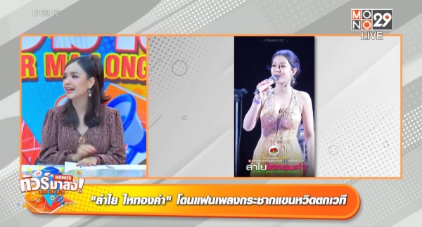 นักร้องสาว ลำไย ไหทองคำ ล่าสุดเจอแฟนคลับกระชากแขนหวิดตกเวที แต่เจ้าตัวมีสติควบคุมสถานการณ์ได้ ใช้คำพูดดี ๆ “ที่รักจับเบา ๆ นะคะ เดี๋ยวหนูตก อย่าดึงนะคะ”