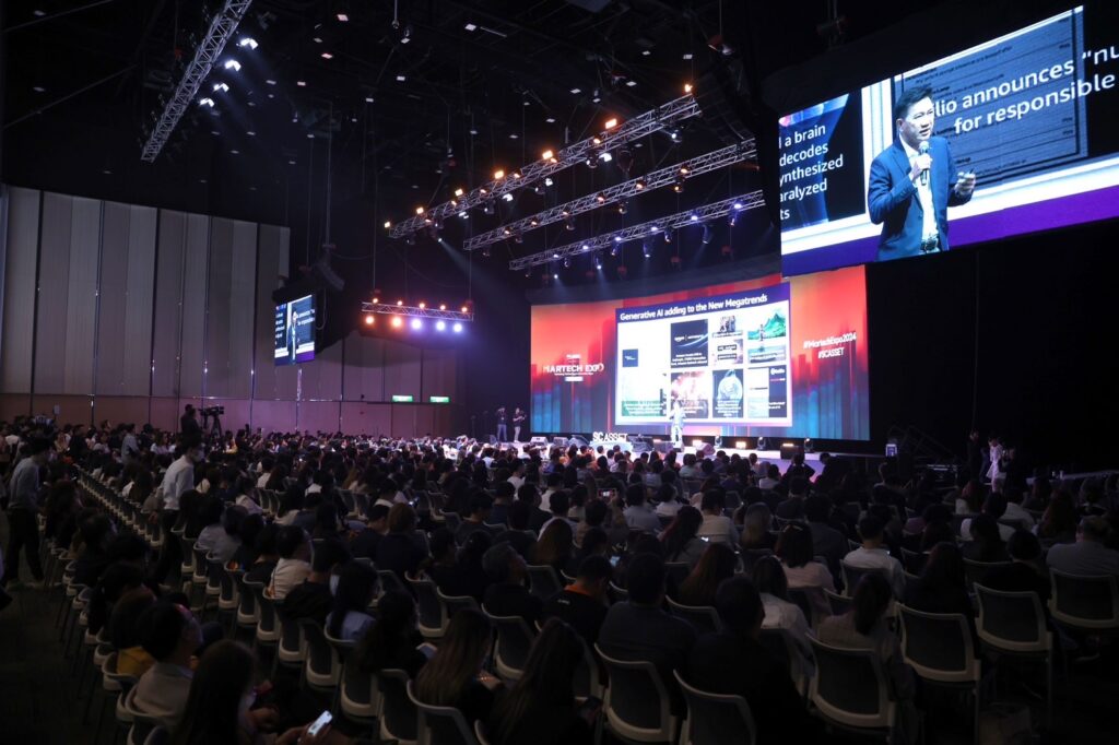 ประสบความสำเร็จอย่างยิ่งใหญ่ สำหรับการจัดงานMarketing Technology & Innovation Expo 2024 by SC Asset หรือ MarTech Expo 2024 ซึ่ง Future Trends ร่วมกับ JITTIPONG Loespradit (จิตติพงศ์ เลิศประดิษฐ์) นายกสมาคมเทคโนโลยีเพื่อการตลาด (MarTech Association), บริษัท เอสซี แอสเสท คอร์ปอเรชั่น จำกัด (มหาชน) – SC Asset รวมถึงพันธมิตรทางธุรกิจ ได้แก่ Rocket Innovation, บริษัท สิริซอฟต์ จำกัด (มหาชน) – SIRISOFT และ Amazon Web Services (AWS) ร่วมด้วย Funcrowd Thailand, Mandala AI., PRIMO, Ready Planet, PAM REAL CDP, AIS Business 5G, Buzzebees, AIYA, Braze, InsightERA และ Freshket ได้ร่วมจัดขึ้นเมื่อวันที่ 21 กุมภาพันธ์ 2567 ที่ผ่านมา ณ ภิรัช ฮอลล์ ไบเทค บางนาโดยมีผู้สนใจจากภาคธุรกิจ ผู้อยู่ในแวดวงการตลาดเข้าร่วมงานกว่า 10,000 คน ตอกย้ำให้เห็นถึงการให้ความสำคัญต่อบทบาทของเทคโนโลยีการตลาดที่ได้เข้ามามีส่วนกำหนดแผนงานและกลยุทธ์ของธุรกิจ เพื่อให้ก้าวทันกับ การเปลี่ยนแปลงต่างๆ โดยภายในงานมีไฮไลท์สำคัญ คือ การรวมตัวของผู้เชี่ยวชาญระดับประเทศกว่า 70 คน ที่มาร่วมอัปเดตเจาะลึกเทรนด์เทคโนโลยี นวัตกรรมการตลาด กับหัวข้อเสวนากว่า 50 Session ผ่าน 4 เวทีเสวนาที่หลากหลายและครอบคลุมแบบ insight ในทุกมิติ ได้แก่ Visionary Stage – Strategy Stage – Global Stage และ Product Launch Stage พร้อม การนำเสนอความล้ำหน้าของเทคโนโลยีการตลาด เครื่องมือและโซลูชันที่ทันสมัย จากผู้ประกอบการด้านดิจิทัลชั้นนำทั้งในและต่างประเทศรวมกว่า 100 บูธ