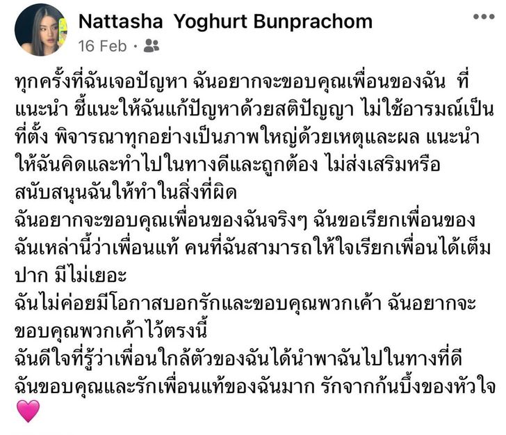 ล่าสุด พี่โยเกิร์ต ได้ออกมาเคลื่อนไหวด้วยข้อความเพื่อขอบคุณ “เพื่อน” ที่คอยสนับสนุน ไว้ว่า