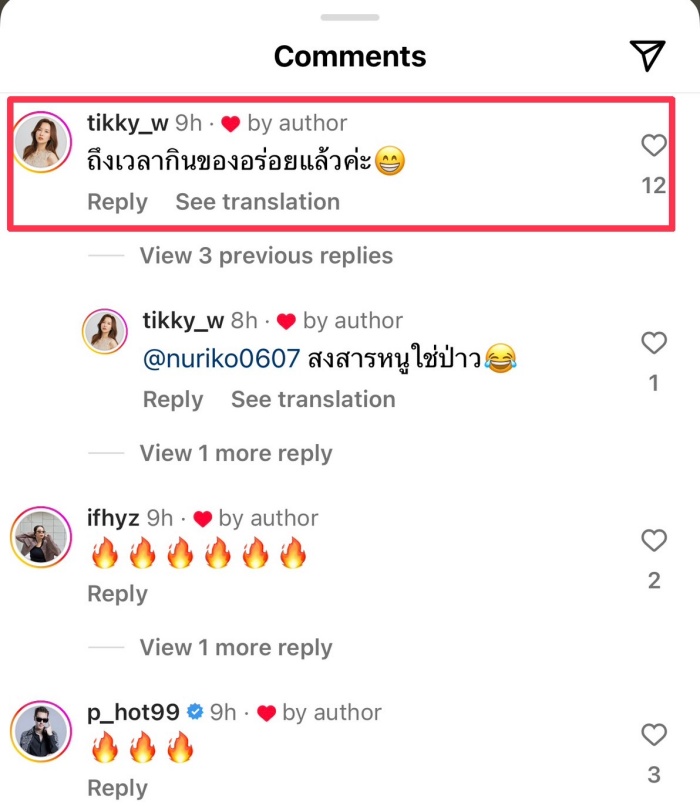 แต่พอมาถึง “ติ๊กกี้ – วิลาสิณี ธัญญะวิเศษศิลป์” แฟนสาวของ เต๋า กลับหักมุม ด้วยการคอมเมนต์ “ถึงเวลากินของอร่อยแล้วค่ะ” ทำเอาช็อตฟีลไปเลยค่ะ เรียกว่า … สวยด้วย ใจกว้างด้วย ถ้าเป็นแฟนเราคงกำไม้เรียวแน่นมือพร้อมหวดไม่ยั้ง โทษฐานอวดหุ่นแซ่บไม่เกรงใจแฟน!