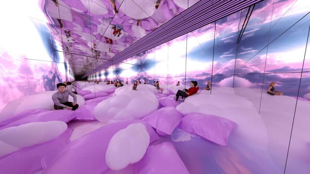 โซนที่ 1 “MORNING ON CLOUD” โซนที่จำลองก้อนเมฆ จำลองราวกับตื่นมากลางท้องฟ้าในยามเช้า