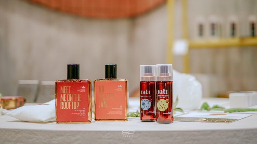 ”ครอบครัว ทำโรงงานเคมีและแร่ธาตุ เป็นผู้เชี่ยวชาญด้านเคมีและแร่ธาตุต่าง ๆ และสารส้มก็เป็นหนึ่งในแร่ธาตุที่คุ้นเคยมาตลอด ตัวเองเป็นคนที่ชื่นชอบใช้สารส้มเองจริงๆแต่เขินทุกครั้งที่เวลานำสารส้มเป็นก้อนพกติดตัวเวลาเดินทางกับเพื่อนไปยังที่ต่าง ๆ ประกอบกับสังเกตเห็นว่า ผลิตภัณฑ์จากสารส้มระงับกลิ่นกายในท้องตลาดส่วนใหญ่นั้น จะเป็นเกรดที่ใช้บำบัดน้ำ ไม่ใช่เกรดที่สัมผัสอาหารได้ (Food Grade) ที่มีความปลอดภัยสูงกว่า จึงได้คิดค้นและพัฒนาสเปรย์ระงับกลิ่นกายจากสารส้มขึ้นมาเป็นผลิตภัณฑ์อย่างแรก จากการทดลองใช้เองและคำแนะนำจากผู้ใช้จริง จึงเกิดความคิดพัฒนาผลิตภัณฑ์ที่ปลอดภัยที่สุด โดยคำนึงถึงความเป็นธรรมชาติและความปลอดภัยต่อร่างกายเป็นหลัก เพราะรติ (RATI) เชื่อว่า อะไรที่เราทานได้ก็ย่อมต้องปลอดภัยต่อผิวหนังและร่างกายของเรา ดังนั้น วัตถุดิบที่เราได้เลือกนำมาใช้นั้นจึงเป็นเกรดที่ดีที่สุด สามารถใช้ในอุตสาหกรรมอาหารได้ (Food Grade) ทำให้ปลอดภัย ไม่ระคายเคืองต่อผิวหนัง และระงับกลิ่นได้ดีที่สุด โดยไม่มีส่วนผสมอื่นที่ก่อให้อันตรายต่อร่างกายของคุณ เช่น แอลกอฮอล์ น้ำหอม หรือ น้ำมันสังเคราะห์ ซึ่งอาจก่อให้เกิดการระคายเคืองภายใต้วงแขนและเกิดรอยดำที่ไม่สม่ำเสมอ อาจทำให้เกิดคราบเหลืองบริเวณเสื้อผ้า รวมถึงไม่มีกลิ่นที่จะรบกวนน้ำหอมราคาแพงที่ฉีดลงบนตัวอีกด้วย ทั้งนี้จากแนวคิดทั้งหมดของรติ จึงได้พัฒนาออกมาเป็นผลิตภัณฑ์ rati Natural Deodorant Spray สเปรย์ระงับกลิ่นกายสูตรธรรมชาติ และ rati Happy Feet สเปรย์ระงับกลิ่นกายบริเวณเท้าและรองเท้า ที่ได้คัดสรรวัตถุดิบที่ดีที่สุดจากธรรมชาติ เพื่อความปลอดภัยต่อร่างกายของผู้บริโภค