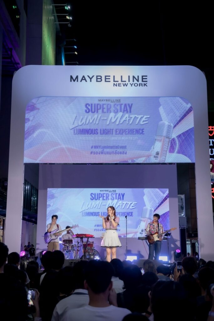 โดนใจวัยรุ่นที่แท้ทรู กับมินิคอนเสิร์ตจาก อิ้งค์ วรันธร Brand Endorser – Maybelline Super Stay Lumi-Matte Campaign พร้อมศิลปินและไอดอล Gen-Z แห่งยุคที่ผนึกกำลังมาร่วมปล่อยแสงกันแบบ Day-to-Night นำโดย LYKN, ATLAS, Project M.O.N, ณฐ ณฐสิชณ์, ออฟโรด, โทมัส-ก้อง-เก่ง-น้ำปิง, น้ำตาล-ฟิล์ม, อันดา-ลูกแก้ว และ มายด์ ณภศศิ ที่มาร่วมโชว์ผิวสวยล้อแสงท่ามกลางแสงไฟ Light Art Installation สุดอลังการพร้อมไฮไลต์ด้วยการร้องเพลงประจำแคมเปญ ‘ALL LIGHTS I SHINE’ ของ #รองพื้นแมทล้อแสง โดย อิ้งค์ วรันธร และ อีกหนึ่งเวอร์ชั่นโดย LYKN