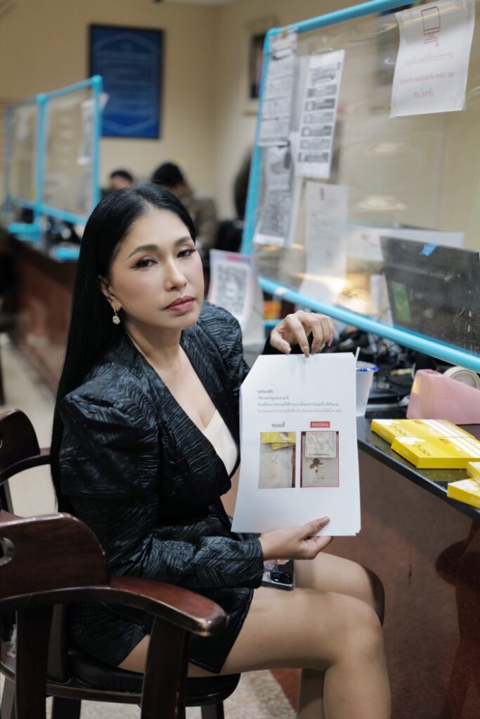 “วันนี้แจ้งความเรียบร้อยแล้ว ที่สน.โชคชัยเพราะเขาเอารูปเราไปลงโดยไม่ได้อนุญาต คนจ่ายเงินหรือคนจ้างเรา หรือคนที่เราทำงานมาตลอดคือ HONEY Q คิวของแท้ คือบริษัท HONEY Q ดังนั้นใครที่ก็อปแล้วเอารูปเอ้ไปละเมิดลิขสิทธิ์ เอ้ฟ้องกลับแน่นอนค่ะ และเป็นคดีอาญาแน่นอน เพราะเราไม่ชอบคนโกง ไม่ชอบมิจฉาชีพ ไม่ชอบคนเอาเปรียบลูกค้า ทำให้ส่งผลถึงชีวิตของเขาด้วย นี่เป็นสิ่งที่เอ้ไม่ชอบเลย ใครเห็นเอ้อยู่ในวงการมา 40 กว่าปีจะรู้เลยว่าสิ่งที่ไม่ชอบที่สุดในชีวิตคือการโกง เอาเปรียบคน นั่นคือสิ่งที่เกลียดมาก วันนี้มาแจ้งความไว้ก่อน”